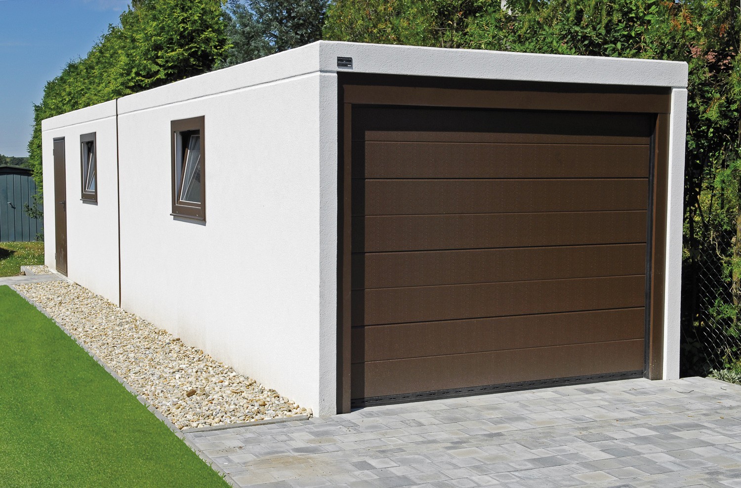 Eine Weissenböck Langgarage kann mit allen Extras ausgestattet werden, die auch für eine Einzelgarage verfügbar sind. Langgaragen werden in der